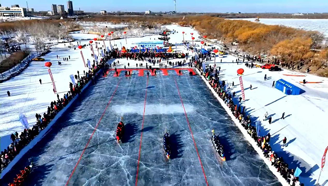 冰上龙舟赛激情 冰雪嘉年华乐趣多